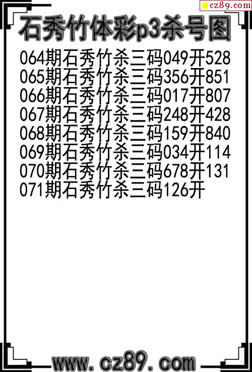 > 26年071期石秀竹体彩p3杀号图
